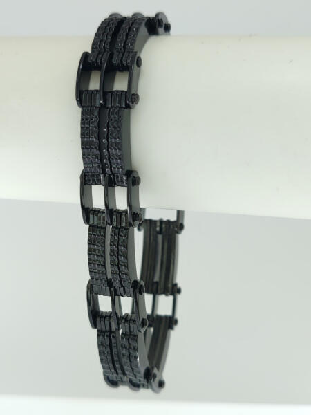Fekete színű nemesacél (316L) karkötő. Tartós, minőségi ékszer, nem színeződik, nem színezi a bőrt. Mindennapi viseletnek is tökéletes választás. Antiallergén ékszer. Hosszúság: 21 cm. Szélesség: 13 mm. A nemesacél ékszerek rendkívül népszerűek kedvező tulajdonságaik miatt. A nemesacél semmilyen nikkelsót nem bocsájt ki magából, ennek következtében teljesen al