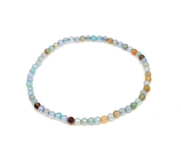 Achát karkötő (golyó fazettált szinezett kék Kína Karkötő ásvány) Az ásvány golyók gumira vannak felfűzve. Az ásványok színbeli aránya eltérhet a képen láthatótól. Amit az achátról érdemes tudnod: Az achát minden színben fellelhető, többnyire szürke, kékesszürke, zöldesszürke, szürkésfehér, barna csíkozással, áttetsző. Lelki gyógyhatás: Az achát lelki