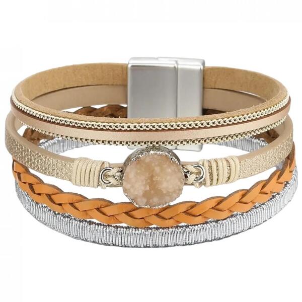 Yanalin Karkötő Csodaszép Yanalin karkötő verhetetlen áron. A karkötőnek mágneses kapcsa van. Az ékszer nem tartalmaz nikkelt, ezért érzékeny bőrű emberek is viselhetik. Tulajdonságok: A karkötő hossza: 19cm A karkötő szélessége: 2,5cm Anyaga: Műbőr Szín: Barna
