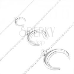 A 925 ezüst karkötő spirálisan megtekert láncból és holdsarló alakú medálból tevődik össze. A holdsarló enyhén kidomborodó, fényes és sima felületű, hátsó oldala üreges. A karkötő hossza állítható. Delfinkapoccsal záródik. Medál méretei: 16 x 15 mmLánc szélessége: 1,3 mmKarkötő hossza: 165 mmHosszabbítható rész: 25 mmTeljes hossz: 190 mm (+/- 5%) Karkötő s