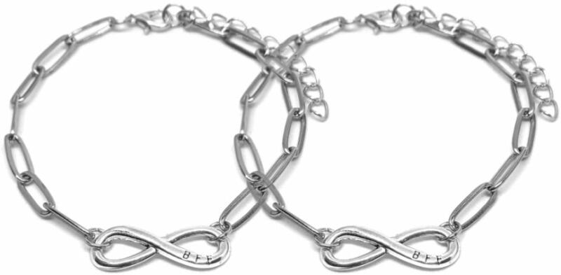Végtele n-BFF (Best Friends Forever - Legjobb Barátok Örökké) charmos karkötő, páros, 2 db. Paramé terek: Charm mérete 3x1 cm. Anyaga fémötvözet, karkötő anyaga rozsdamentes acél. Karkötők mérete 17+5 cm. (Ha ettől eltérő méretet szeretnél, rendeléskor a MEGJEGYZÉSBE írd be. ) A legfontosabb dolog a világon a barátság, hiába űzzük az anyagi javakat egész nap, ha b