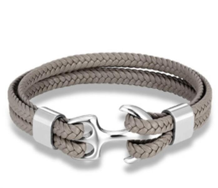Anker Karkötő Különleges Anker karkötő uraknak verhetetlen áron. Az ékszer nem tartalmaz sem nikkelt, sem ólmot, sem kadmiumot, ezért érzékeny bőrű emberek is viselhetik. Tulajdonságok: A karkötő hossza: 19,5cm Anyaga: Öko bőr / Fém és cink ötvözete Szín: Szürke/Ezüst