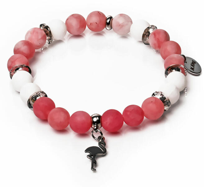 Figyelem! A képen exkluzív kivitelű, rugalmas karkötő látható kapocs nélkül, de kérheted extra erős acélsodronyra is delfinkapoccsal és 5 cm hosszabbítólánccal. Ha a kapcsos verziót kéred, ami nem szakad, nem nyúlik, válaszd ki a listából, vagy írd be a Megjegyzésbe, és a csuklód körbemért méretét is add meg. A karkötőt alapesetben a képen is látható charmmal kü