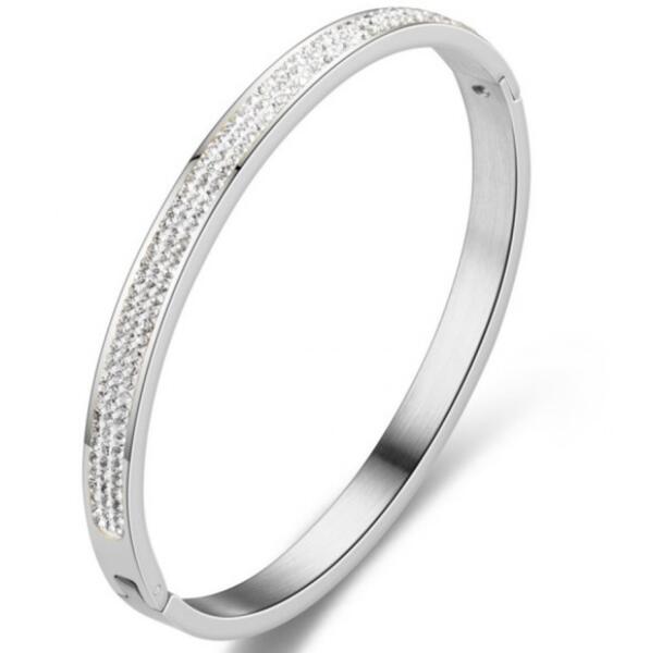 Ulrica Karkötő Szépséges Ulrica merev karkötő szuper áron. A karkötő apró cirkónia ékkövekkel díszített. Az ékszer nem tartalmaz nikkelt, ezért ézékeny bőrű emberek is viselhetik. Tulajdonságok: A karkötő átmérője: 6,5cm Szín: Ezüst Anyaga: Nemesacél