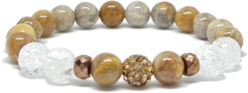 Kiváló minőségű valódi korall ásványból készült ásvány karkötő. A korall karkötő élénk színe és sima felülete friss, fiatalos megjelenést biztosít, miközben a védelem és a bátorság szimbólumaként is viselhetőA karkötő valódi korall, roppantott hegyikristály 8-9 mm ásványból hematit és disco gömb dísszel készült. Az ásvány, karkötő formában viselve n