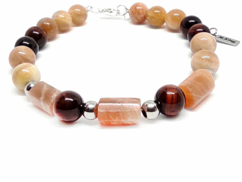 Figyelem! Nem szakad, nem nyúlik! Tartós ékszer. Kérheted csat nélküli rugalmas gumidamilra is. Amennyiben rugalmas damilra kéred, Megjegyzésbe írd be rendeléskor, hogy csat helyett rugalmas gumidamilt kérsz, és a csuklód körbemért méretét is írd meg. Az ékszer ásványai és tartozékai: – 8 mm-es Napkő gyöngyök – 8 mm-es vörös Tigrisszem gyöngyök – téglalap a
