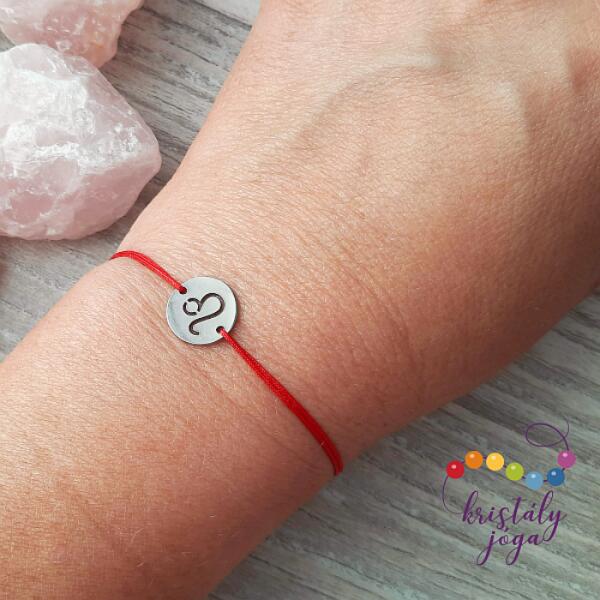 A zsinór tartós, a színe nem kopik, a színe piros mert az Oroszlán jegy a tűz elemhez kapcsolódik. A medál nemesacélból van, nem okoz allergiát. A karkötőt csúszó csomóval láttam el, 16-20 cm-ig állítható. Ha ettől eltérő méretet szeretnél a megjegyzés rovatba írd be.