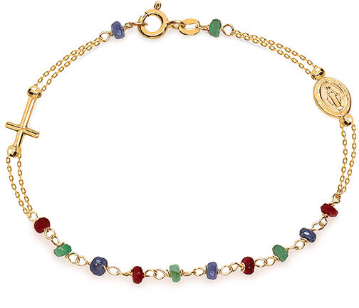 Arany rózsafüzér karkötő szimulált drágakövekkel, modell IZ11220