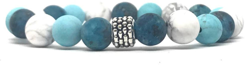 Egyedi ásvány karkötő A 8mm-es Achát, Türkiz és Howlit ásvány golyókból készült karkötő speciális gumis damilra van fűzve, fém köztes díszítéssel. Amit az achátokról tudni kell: Az achát rengeteg színben fellelhető, többnyire szürke, kékesszürke, zöldesszürke, szürkésfehér, barna csíkos, áttetsző. Az achátok testi és lelki hatásai: Tisztítja az aurát. Me