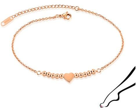 A 316L acélból készült lánc, egy függőlegesen összekötött ovális láncszemekből kialakított lánc. A bokalánc közepén egy sorban elhelyezett gyöngysor formájú díszítő rész található, amely közé egy szimmetrikus, sima és fényes szív van erősítve. A bokalánc lapos ovális láncszemekkel és homárkarmos záródással befejezett hosszabbító lánccal rendelkezik A l