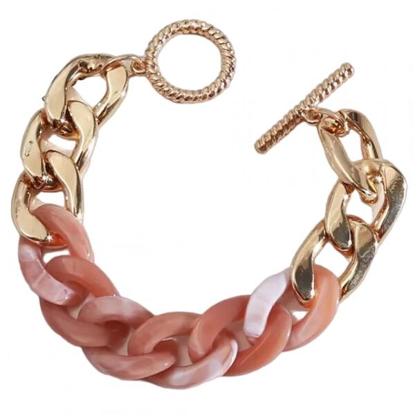Cadena Karkötő Cadena karkötő verhetetlen áron. Az ékszer nem tartalmaz nikkelt, ezért érzékeny bőrű emberek is viselhetik. Tulajdonságok: A karkötő hossza: 15cm Anyaga: Műanyag, Fém és cink ötvözete Szín: Arany/Rózsaszín