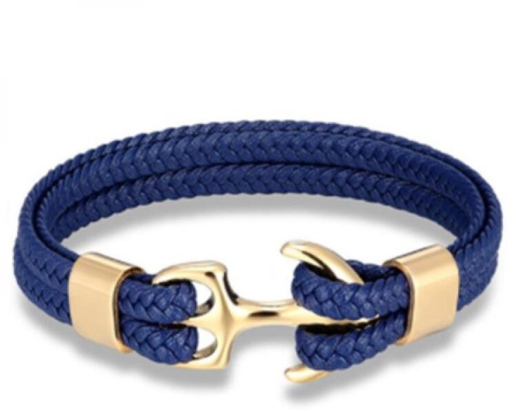 Anker Karkötő Különleges Anker karkötő uraknak verhetetlen áron. Az ékszer nem tartalmaz sem nikkelt, sem ólmot, sem kadmiumot, ezért érzékeny bőrű emberek is viselhetik. Tulajdonságok: A karkötő hossza: 19,5cm Anyaga: Öko bőr / Fém és cink ötvözete Szín: Kék/Arany