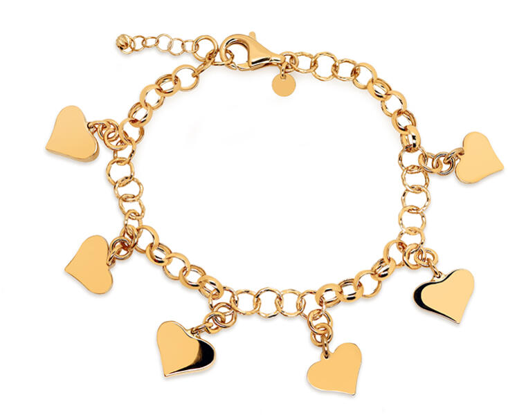 Sárga aranyból készült karkötő függő szívekkel, modell IZ30923