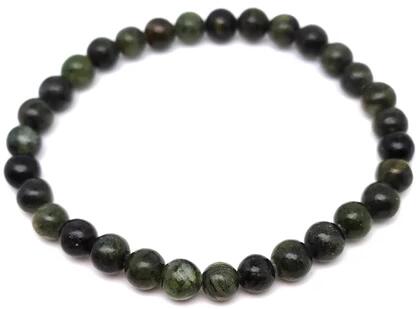 A jáde golyók gumira vannak felfűzve. Amit a jádéről érdemes tudnod: A Jáde egy gyűjtőcsoportja a kövek egy fajtájának. A zöld kínai jáde az egyik legnépszerűbb és leggyakoribb a csoporton belül, amelyik hazájában Kínában nemzeti kőnek számít. Lelki gyógyhatás: A zöld szín általános nyugtató hatással bír. Igaz ez a jádéra is, mivel csökkenti az agressziót, s