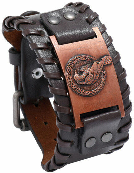 Sasmotívumos széles bőr karkötő, állítható méret. Hangsúlyos, vagány karkötő, mérete állítható. Anyaga bőr és fémötvözet. Szélessége 4 cm, hossza 27,5 cm.