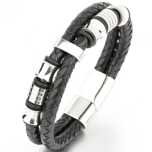 Ryan Karkötő Különleges Ryan karkötő uraknak verhetetlen áron. Ezzel a karkötővel szépen kiegészítheti öltözékét. Az ékszer nem tartalmaz sem nikkelt, sem ólmot, sem kadmiumot, ezért érzékeny bőrű emberek is viselhetik. Tulajdonságok: A karkötő hossza: 20cm Anyaga: Öko bőr / Nemesacél Szín: Fekete/Ezüst