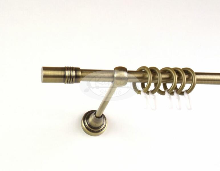 A BOSTON óarany színű 200 cm-es, 1 rudas fém karnis szett tartalma: 1 db 200 cm-es óarany színű, 16 mm átmérőjű fém karnisrúd 2 db Boston típusú óarany színű fém karnis végzáró 2 db falra szerelhető fém konzol 20 db óarany színű műanyag függönykarika ráncszedő kampóval