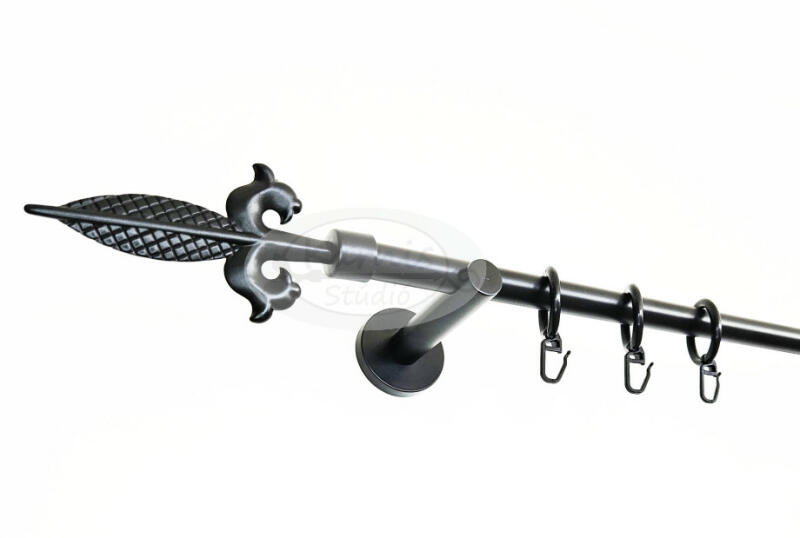 A SZELLŐ fekete 1 rudas, 300 cm-es, modern tartós fém karnis szett tartalma: 1 db fekete színű, 300 cm hosszú, 16 mm átmérőjű fém karnisrúd 2 db Szellő típusú fekete fém végzáró 3 db falra szerelhető modern fém konzol 30 db fekete műanyag karika fekete színű ráncszedő kampóval