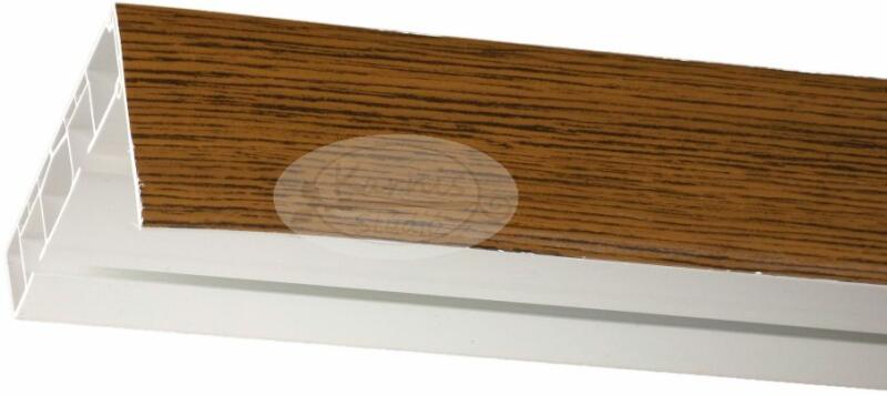 Erős műanyagból készült 2 soros mennyezeti sín függönyök rögzítéséhez - RUSZTIKUS TÖLGY színű műanyag előlappal és tartozékcsomaggal. A mennyezeti sín az egyik legelterjedtebb függönytartó rendszer megoldás. Praktikuma az egyszerűségében, könnyű felszerelhetőségében rejlik. A toldóelem használatával bármilyen hosszúságban alkalmazható. A szett tartalma: 1 db