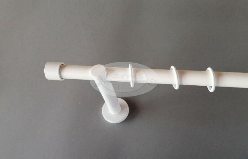 A NANTES 1 rudas, 160 cm-es FEHÉR színű fém karnis szett tartalma: 1 db 19 mm átmérőjű, 160 cm hosszú fém karnisrúd fehér színben 2 db Nantes típusú fém karnis végzáró 2 db falra szerelhető fém konzol 16 db szilikon betétes fehér színű fém függönykarika ráncszedő kampóval A 19 mm-es France függönykarnis család tagjai ritakaságszámba menő fehér színűkkel és