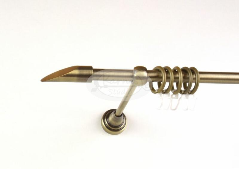 A DETROIT óarany színű 240 cm-es, 1 rudas fém karnis szett tartalma: 1 db 240 cm-es óarany színű, 16 mm átmérőjű fém karnisrúd 2 db Detroit típusú óarany színű fém karnis végzáró 3 db falra szerelhető fém konzol 24 db óarany színű műanyag függönykarika ráncszedő kampóval