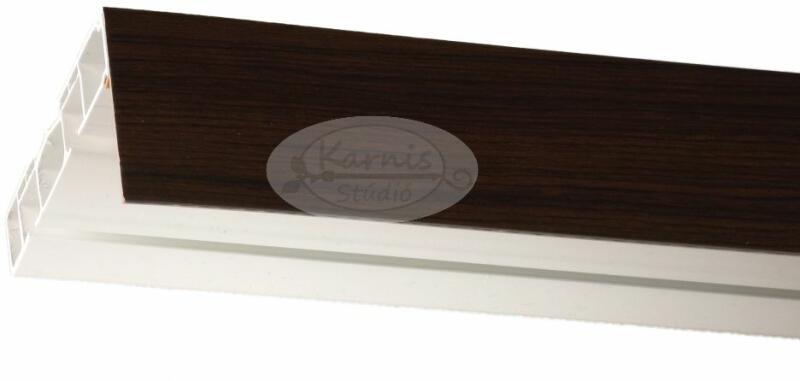 Erős műanyagból készült 2 soros mennyezeti sín függönyök rögzítéséhez - VENGE színű műanyag előlappal és tartozékcsomaggal. A mennyezeti sín az egyik legelterjedtebb függönytartó rendszer megoldás. Praktikuma az egyszerűségében, könnyű felszerelhetőségében rejlik. A toldóelem használatával bármilyen hosszúságban alkalmazható. A szett tartalma: - 1 db műanyag