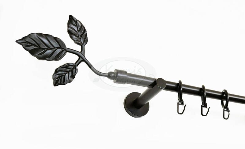 A TATA fekete 1 rudas, 200 cm-es, modern tartós fém karnis szett tartalma: 1 db 200 cm-es, 16 mm átmérőjű, fekete fém karnisrúd 2 db Tata típusú fekete fém végzáró 2 db falra szerelhető modern fém konzol 20 db fekete műanyag karika fekete színű ráncszedő kampóval