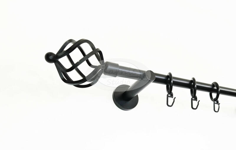 A SZEGED fekete 1 rudas, 300 cm-es, modern tartós fém karnis szett tartalma: 1 db fekete színű, 300 cm hosszú, 16 mm átmérőjű fém karnisrúd 2 db Szeged típusú fekete fém végzáró 3 db falra szerelhető modern fém konzol 30 db fekete műanyag karika fekete színű ráncszedő kampóval