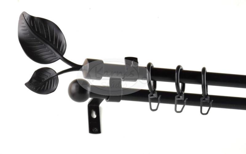 A SZELLŐ fekete 200 cm-es 2 rudas fém karnis szett tartalma: 2 db fekete 200 cm-es fém karnisrúd 2 db Szellő típusú fekete fém végzáró 2 db Veszprém típusú kis gömb végzáró 2 db falra szerelhető fém konzol a felszereléshez szükséges tiplik és csavarok 40 db fekete műanyag függönykarika ráncszedő kampóval