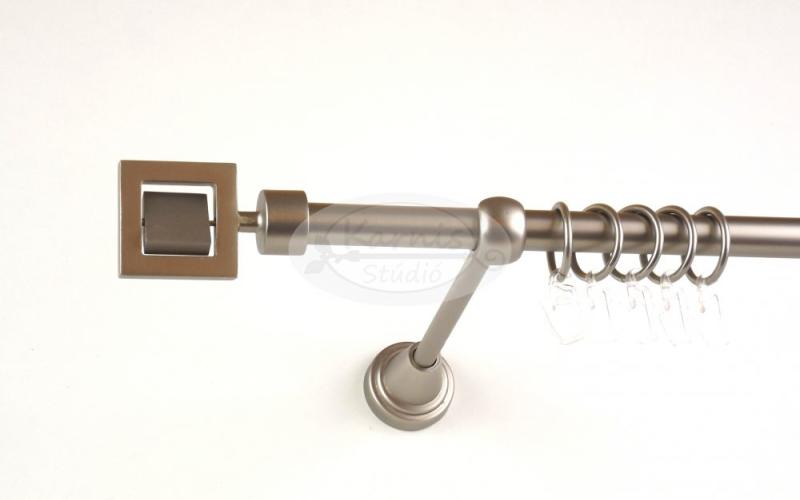 A SZEGED 300 cm-es nikkel-matt színű 1 rudas, modern tartós fém karnis szett tartalma: 1 db 300 cm-es nikkel-matt színű 16 mm átmérőjű fém karnisrúd 2 db Szeged típusú nikkel-matt színű végzáró 3 db falra szerelhető modern fém konzol 30 db fém karika műanyag ráncszedő kampóval