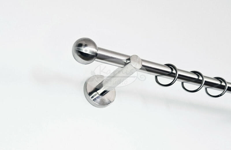 A RENNES 1 rudas, 300 cm-es fém karnis szett tartalma: 1 db 19 mm átmérőjű, 300 cm hosszú fém karnisrúd (fényes inox színben) 2 db Rennes (gömb formájú) fém karnis végzáró 3 db falra szerelhető fém konzol 30 db szilikon betétes fém karika (ún. csöndesgyűrű) ráncszedő kampóval A 19 mm-es France Prémium függönykarnis család tagjai - ahogyan erre az elnevezésük is ut