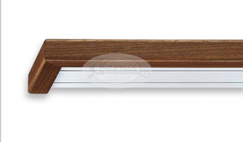 Quadra 2 sínes dió színű előlapos fa karnis OLDALFALRA Anyaga: fa Színe: dió (vagy kiválasztható a listából) A fa előlap magassága 25 mm, vastagsága: 22 mm A 2 soros sín méretei: 120 mm széles, 16 mm magas A (fotón is látható) szett tartalma: - fa előlapos karnis a kiválasztott hosszban - bele való 2 soros mennyezeti sín csúszkákkal - oldalfai tartók (100 cm-től 159 cm-