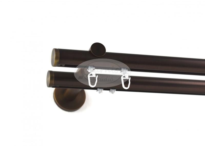 A kupak végzárós bronz színű 2 rudas, belső sínes 25 mm átmérőjű fém karnis szett tartalma: 2 db bronz színű belső sínes fém karnisrúd a kiválasztott hosszúságban 4 db kupak formájú, bronz színű fém karnis végzáró (hossza: 6 mm) bronz színű modern fém karnis tartó konzolok (200 cm-ig 2 db, 240 cm-es hossztól 3 db, a 400 cm hosszú karnishoz 4 db) a felszereléshez
