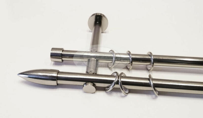 A ROUEN 2 rudas, 300 cm-es fém karnis szett tartalma: 2 db 19 mm átmérőjű, 300 cm hosszú fém karnisrúd (fényes inox színben) 2 db Rouen típusú fém karnis végzáró 2 db Nantes típusú fém karnis végzáró 3 db falra szerelhető fém konzol 60 db szilikon betétes fém karika (ún. csöndesgyűrű) ráncszedő kampóval A 19 mm-es France Prémium függönykarnis család tagjai - ah