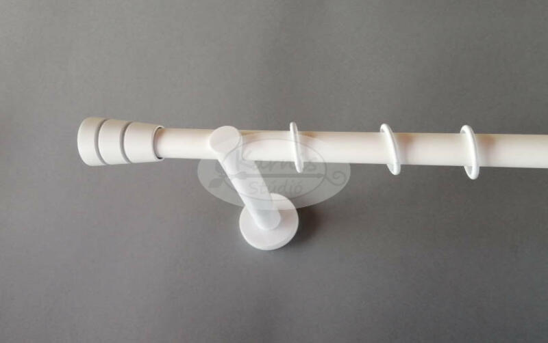 A PARIS 1 rudas, 120 cm-es FEHÉR színű fém karnis szett tartalma: 1 db 19 mm átmérőjű, 120 cm hosszú fém karnisrúd fehér színben 2 db Paris típusú fém karnis végzáró 2 db falra szerelhető fém konzol 12 db szilikon betétes fehér színű fém függönykarika ráncszedő kampóval A 19 mm-es France függönykarnis család tagjai ritakaságszámba menő fehér színűkkel és le