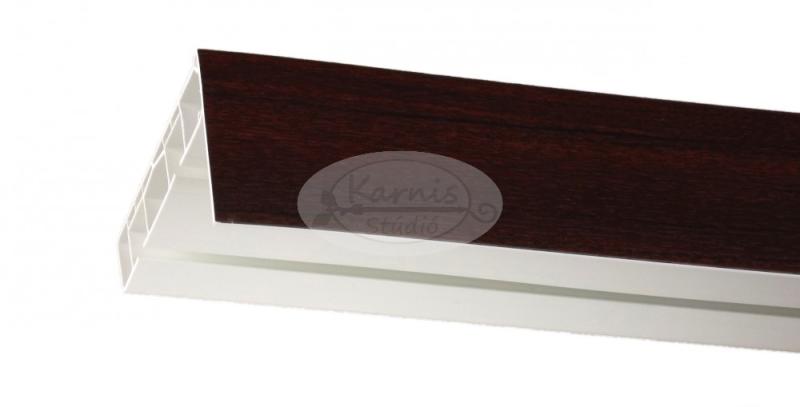 Erős műanyagból készült 3 soros mennyezeti sín függönyök rögzítéséhez - MAHAGÓNI színű műanyag előlappal és tartozékcsomaggal. A mennyezeti sín az egyik legelterjedtebb függönytartó rendszer megoldás. Praktikuma az egyszerűségében, könnyű felszerelhetőségében rejlik. A toldóelem használatával bármilyen hosszúságban alkalmazható. A szett tartalma: - 1 db műa