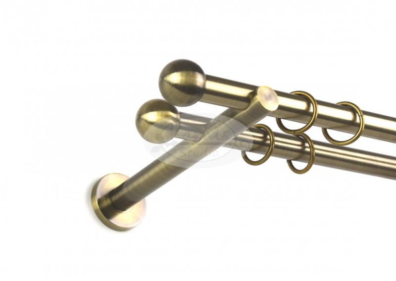 A BÉTA óarany színű 2 rudas karnis szett tartalma: 2 db óarany színű fém karnisrúd a kiválasztott hosszúságban 4 db Béta gömb formájú óarany színű fém karnis végzáró a szükséges mennyiségű óarany színű fém karnistartó konzol a felszereléshez szükséges tiplik és csavarok a karnisrudak hosszának megfelelően 10 cm-ként 1 db óarany színű fém függönykarika (