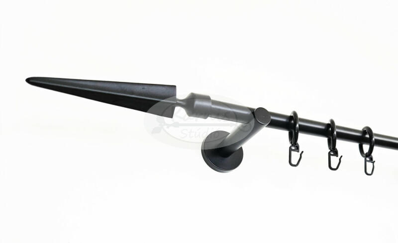 A KESZTHELY fekete 1 rudas, 200 cm-es, modern tartós fém karnis szett tartalma: 1 db 200 cm-es, 16 mm átmérőjű, fekete fém karnisrúd 2 db Keszthely típusú fekete fém végzáró 2 db falra szerelhető modern fém konzol 20 db fekete műanyag karika fekete színű ráncszedő kampóval