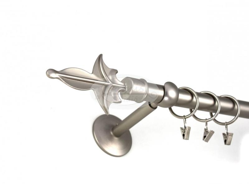 A KESZTHELY nikkel-matt színű 320 cm-es 1 rudas fém karnis szett tartalma: 2 db 160 cm-es nikkel-matt színű 16 mm átmérőjű fém karnisrúd 1 db toldó elem 2 db Keszthely típusú nikkel-matt színű végzáró 3 db falra szerelhető fém konzol a felszereléshez szükséges tiplik és csavarok 32 db fém karika műanyag ráncszedő kampóval