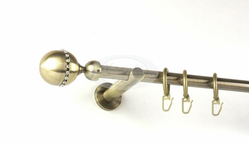 A MONTANA óarany színű, 120 cm-es, 1 rudas, modern tartós fém karnis szett tartalma: 1 db 120 cm-es óarany színű, 16 mm átmérőjű fém karnisrúd 2 db Montana strasszkövekkel díszített óarany színű fém karnis végzáró 2 db falra szerelhető modern fém konzol 12 db óarany színű műanyag függönykarika ráncszedő kampóval A Karnis Stúdió által kínált függönykarnis r