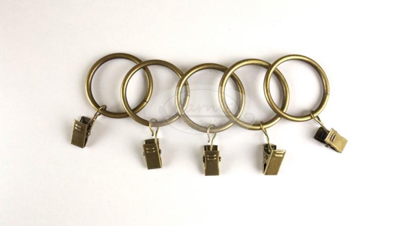 25 mm átmérőjű óarany karnisrúdhoz való fém karika csipesszel. 10 db/ csomag A megrendelt karnis szetthez a karnisrúd hosszától függően 10 cm-ként 1 db karikát adunk a szettben. Ha ennél több karikára lenne szüksége, ezen az oldalon lehetősége van több karikát rendelni.