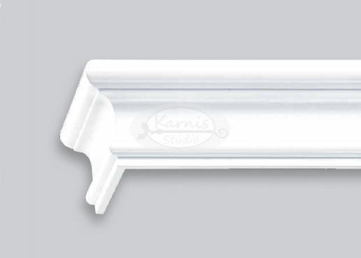 Barock 3 sínes fehér színű előlapos fa karnis MENNYEZETRE Anyaga: fa Színe: fehér (vagy kiválasztható a listából) A fa előlap magassága 70 mm, vastagsága: 32 mm a legszélesebb pontján A 2 soros sín méretei: 140 mm széles, 16 mm magas A (fotón is látható) szett tartalma: - fa előlapos karnis a kiválasztott hosszban két végén lezárással (de enélkül is kérhető, ha pl.