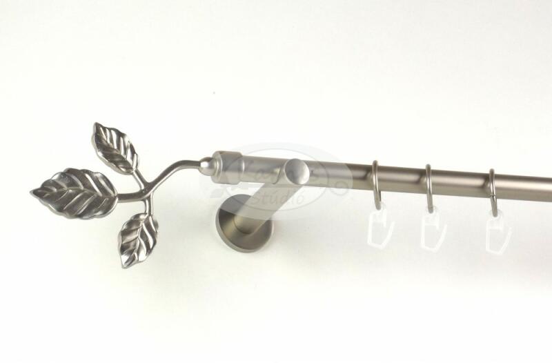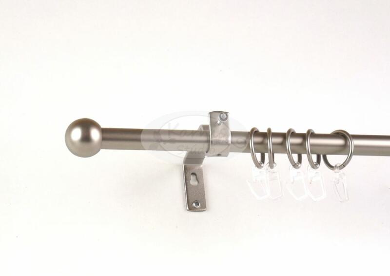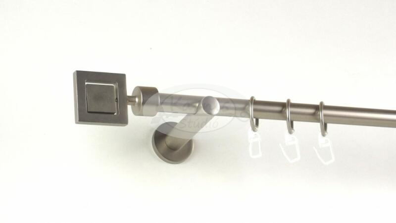 A CHICAGO 160 cm-es nikkel-matt színű 1 rudas, modern tartós fém karnis szett tartalma: 1 db 160 cm-es nikkel-matt színű 16 mm átmérőjű fém karnisrúd 2 db Chicago típusú nikkel-matt színű végzáró 2 db falra szerelhető modern fém konzol 16 db fém karika műanyag ráncszedő kampóval