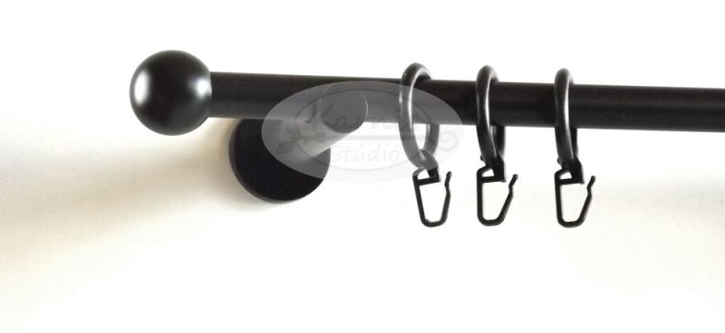 A SOPRON fekete 300 cm-es 2 rudas karnis szett tartalma: 2 db fekete 300 cm-es fém karnisrúd a választott hosszúságban 2 db Sopron típusú fekete fém végzáró 2 db Veszprém típusú kis gömb végzáró 3 db falra szerelhető fém konzol a felszereléshez szükséges tiplik és csavarok 60 db fekete műanyag függönykarika ráncszedő kampóval