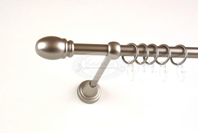 A ST. LOUIS 120 cm-es nikkel-matt színű 1 rudas fém karnis szett tartalma: 1 db 120 cm-es nikkel-matt színű 16 mm átmérőjű fém karnisrúd 2 db St. Louis típusú nikkel-matt színű végzáró 2 db falra szerelhető fém konzol 12 db fém karika műanyag ráncszedő kampóval A 16 mm-es Amerika fém függönykarnis család tagjai a legnagyobb végzáró választékkal rendelkező fém ka