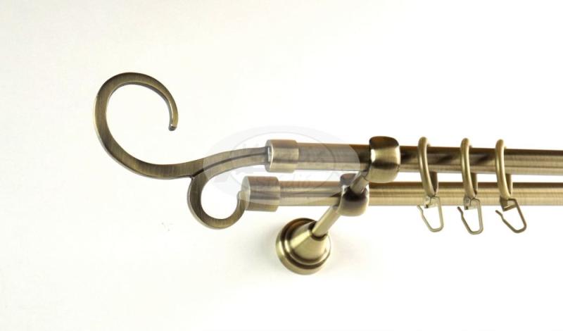 Az ORLANDO óarany színű, 120 cm-es, 2 rudas, fém karnis szett tartalma: 2 db 120 cm-es óarany fém karnisrúd 2 db Orlando típusú óarany színű fém végzáró 2 db Kansas típusú kis kupak végzáró 2 db falra szerelhető fém konzol 24 db óarany színű műanyag karika ráncszedő kampóval A Karnis Stúdió által kínált függönykarnis rudak fix méretűek, de egyszerűen (egy f