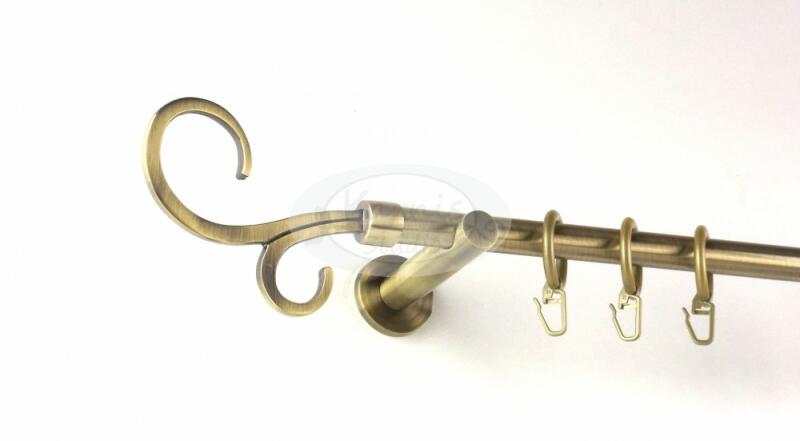 A SZEGED óarany színű 320 cm-es 1 rudas fém karnis szett tartalma: 2 db 160 cm-es óarany fém karnisrúd 1 db toldó elem 2 db Szeged típusú óarany színű fém végzáró 3 db falra szerelhető fém konzol 32 db óarany színű műanyag karika ráncszedő kampóval