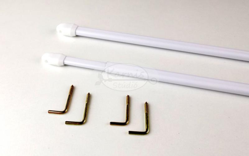 FEHÉR színű vitrázs pálca 2 db/csomag - A vitrázspálcák mérete a megadott mérettartományon belül állítható. - A vitrázspálcát az ablak szárnyra (keretre) kell rögzíteni. Ily módon az ablak nyitásakor együtt mozog az ablakkal. - A vitrázspálcára kizárólag könnyű függönyt, vitrázsfüggönyt helyezzünk! A vitrázs rudakat leginkább konyha ablakok, ebédlő ablakok,