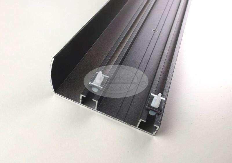 Antracit (sötétszürke) színű, alumínium alapanyagú jó minőségű, erős két pályás függönysín több méretben. A szett tartalma: - antracit színű alumínium profil 4 cm magas előlappal a kiválasztott hosszúságban - 1 pár műanyag végzáró, mely eltakarja a sín keresztmetszetét (15 cm hosszú, de rövidíthető ugyanakkora méretre mint a sín szélessége) - 2 pár végr