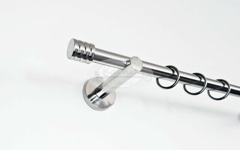 A LISABON 200 cm-es, 1 rudas fém karnis szett tartalma: 1 db fényes inox színű 200 cm-es fém karnisrúd 2 db Lisabon típusú fém karnis végzáró 2 db falra szerelhető fém konzol 20 db fém függönykarika műanyag ráncszedő kampóval